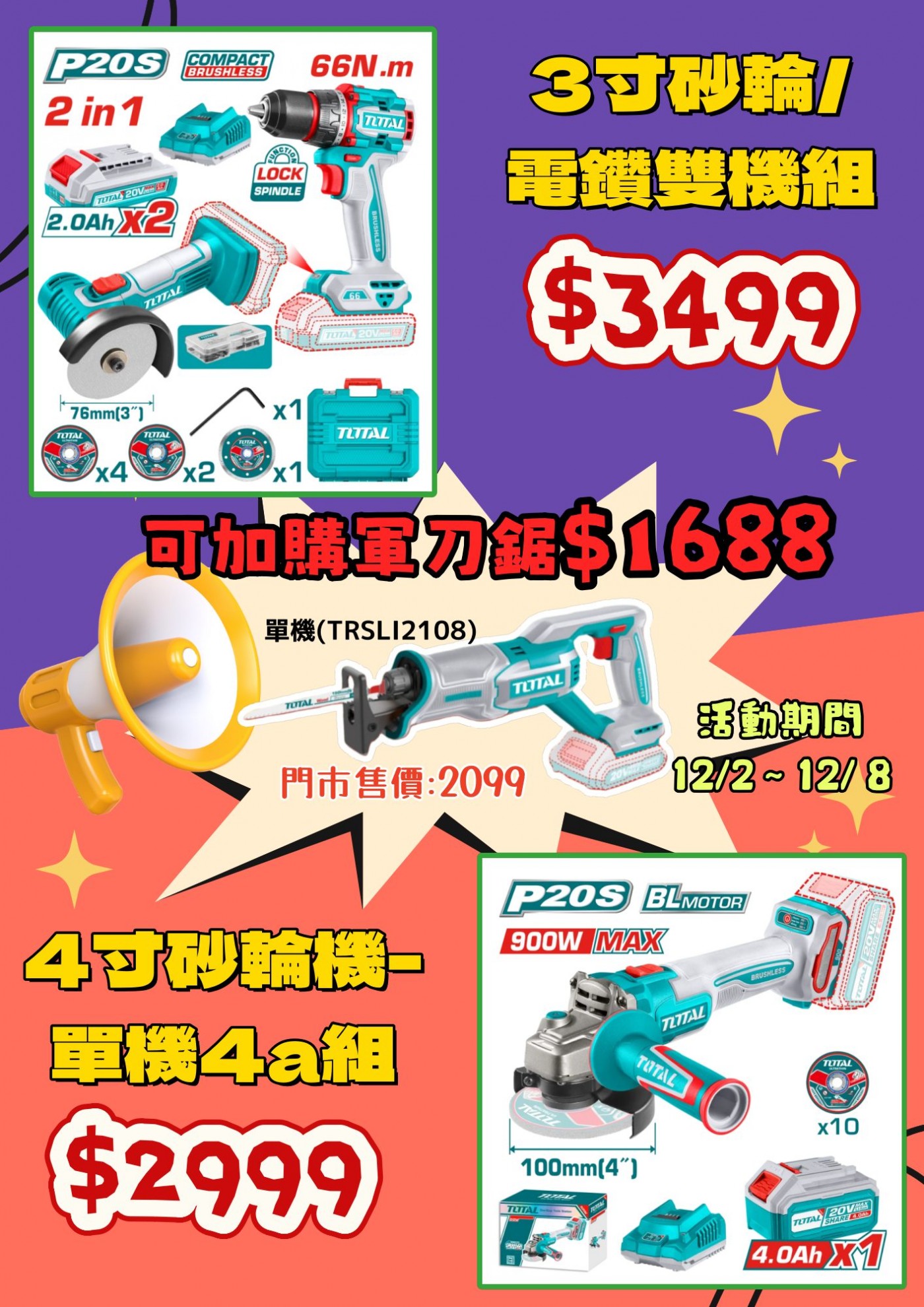 3吋砂輪/電鑽雙機組:$3499