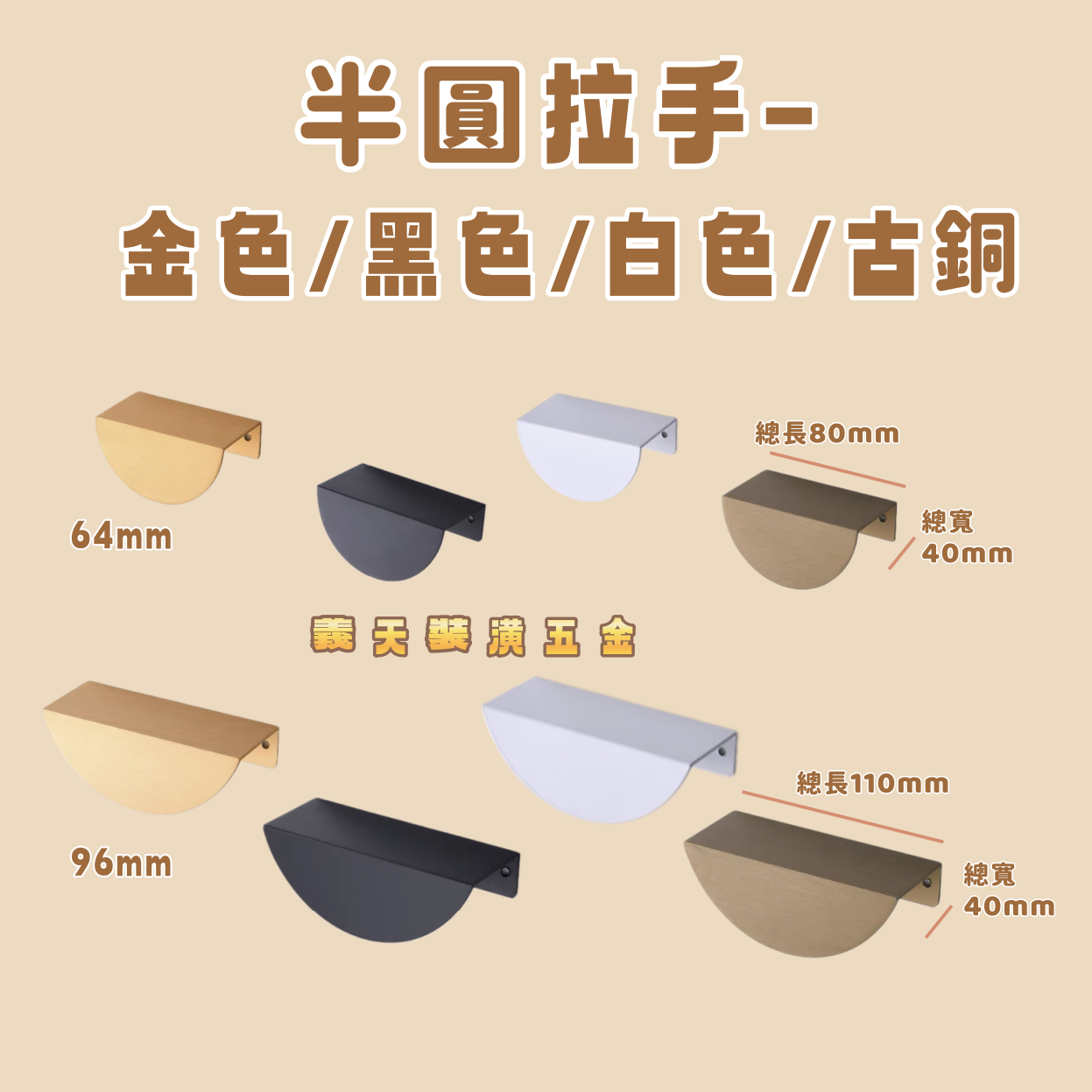 半圓拉手-金色/黑色/白色/古銅色