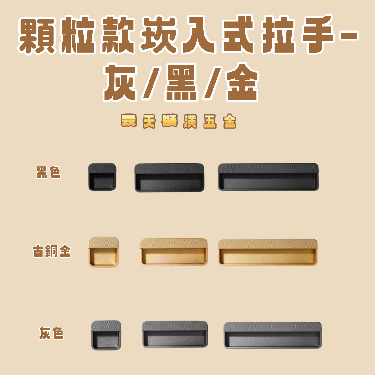 顆粒款崁入式拉手-灰/黑/金