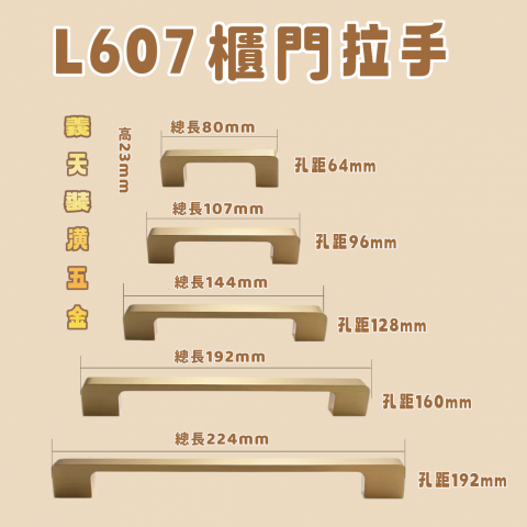 L607櫃門拉手-金色